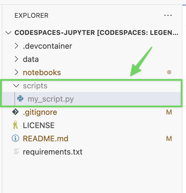@tianyuan09 ➜ /workspaces/codespaces-jupyter/scripts (main) $ touch my_script.py