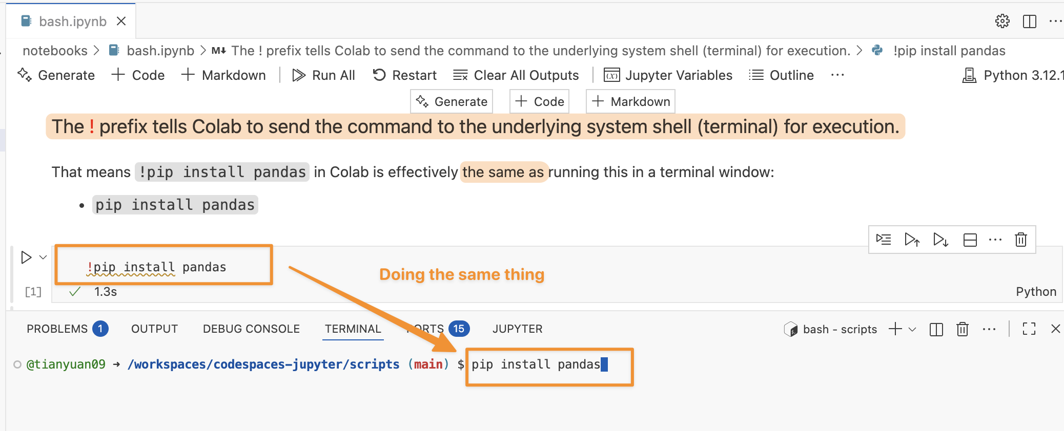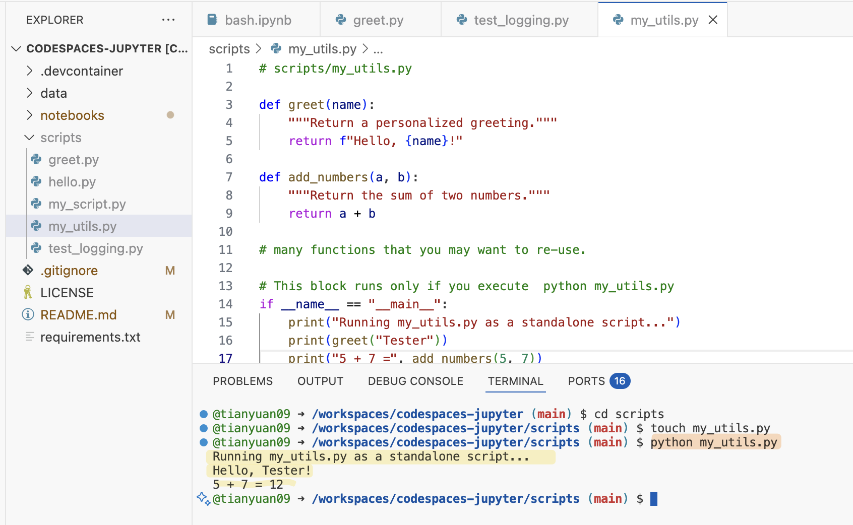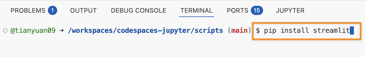 @tianyuan09 ➜ /workspaces/codespaces-jupyter (main) $
