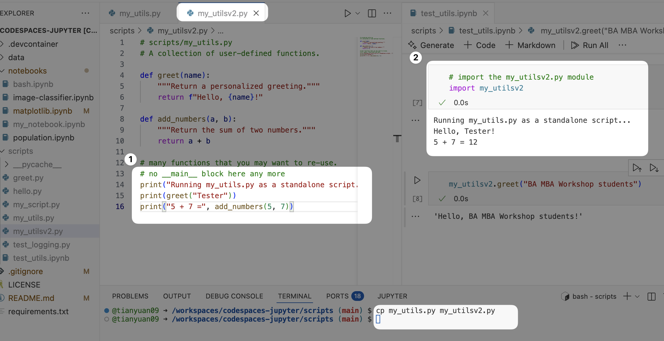 “tianyuan09” — the current user logged into this environmentDifference between .ipynb Notebook and .py Script File.