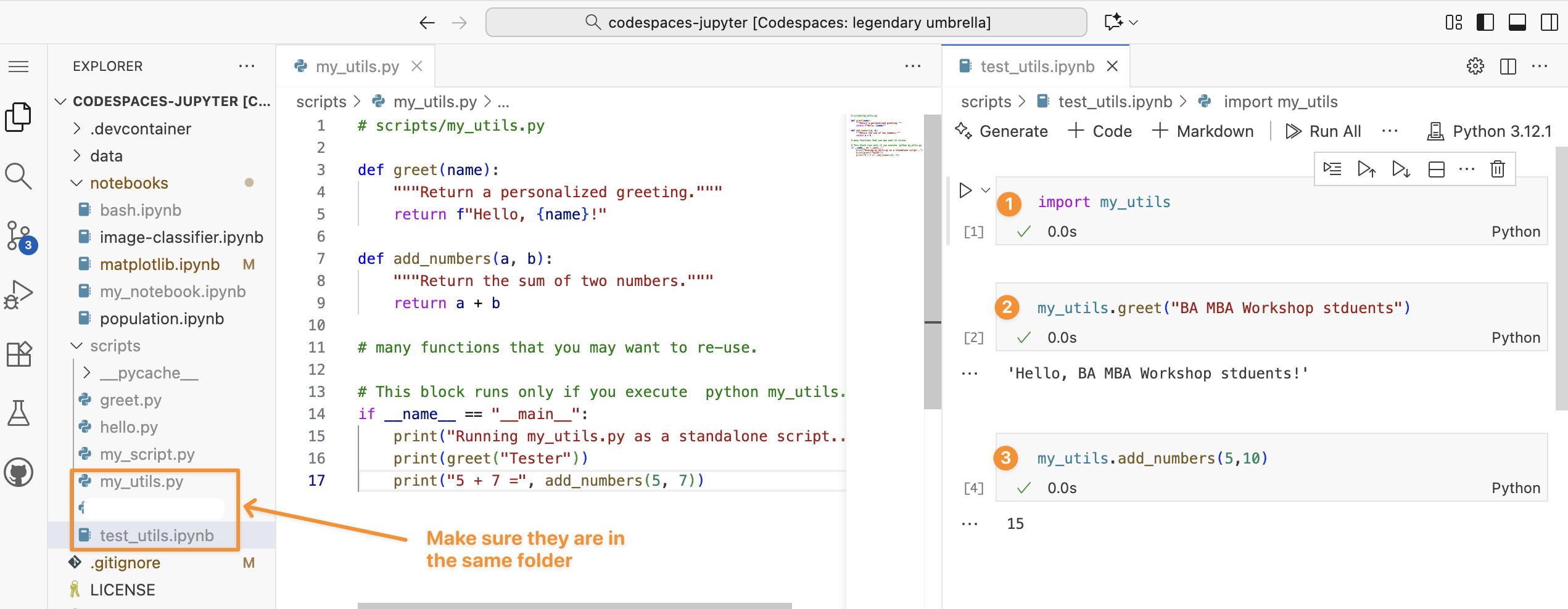 Create a test_util.ipynb file in the same folder as your my_utils.py file. Then, you can do import my_utils to use it like any module/package that you have used before.