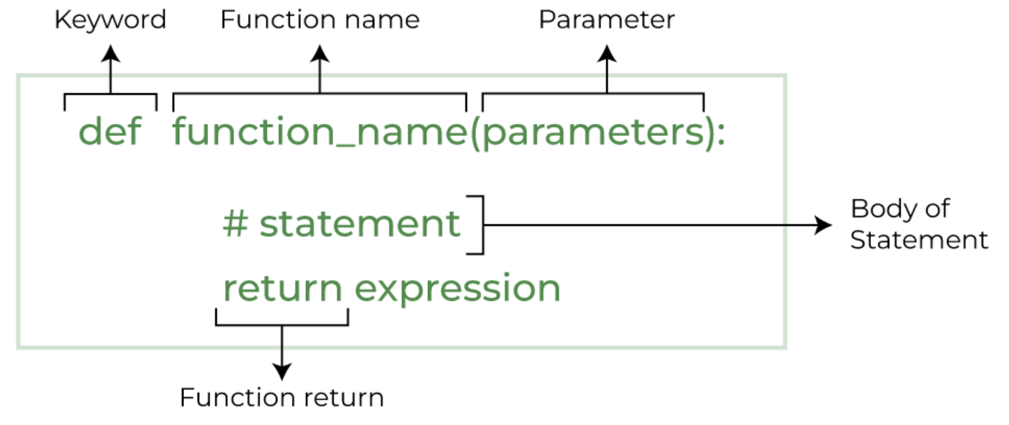 The syntax of defining a python function.